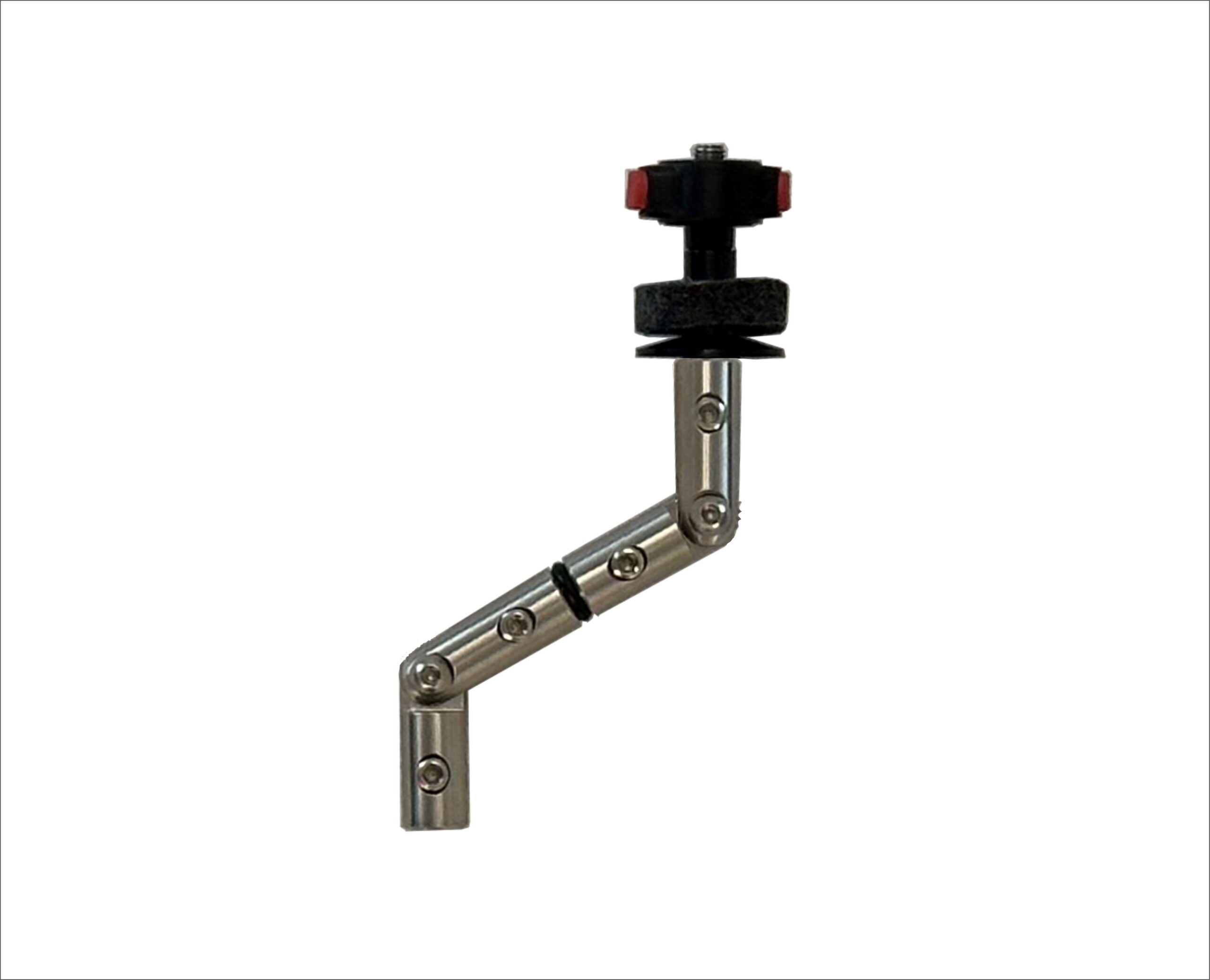 Arm (double angles) that fits the rod system. Complete with sleeve, felt washer and cymbal lock. The two angles in combination are adjustable in all directions. Stainless steel –  Brushed surface.